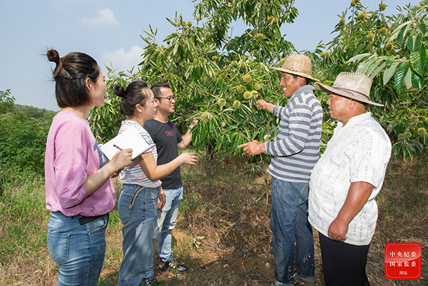 安徽省各級紀檢監(jiān)察機關緊緊圍繞決戰(zhàn)脫貧攻堅做深做實監(jiān)督工作,加大群眾身邊腐敗和作風問題治理力度。圖為淮南市八公山區(qū)紀檢監(jiān)察干部深入板栗園區(qū),向種植戶了解惠民政策落實情況。倪慧 攝