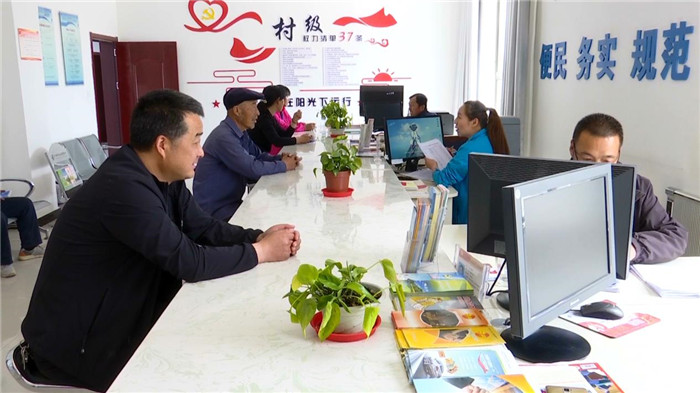 圖為玉門市黃閘灣鎮(zhèn)梁子溝便民服務大廳,工作人員按照“玉門市村級權(quán)力清單37條”規(guī)定程序,為村民辦理低保救助申請、戶口遷入遷出、林木采伐手續(xù)等服務事項。