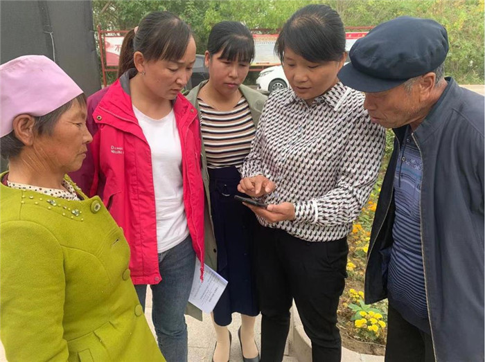 圖為酒泉市瓜州縣廣至鄉(xiāng)干部指導村民使用“微平臺”。