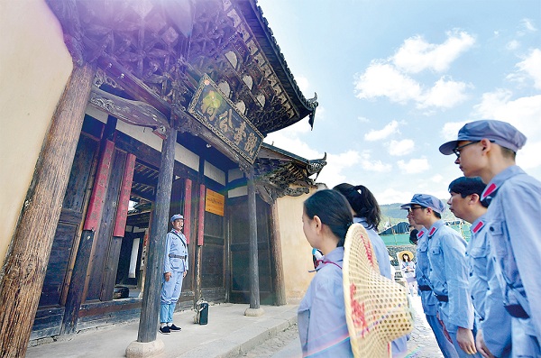 福建省長汀縣中復(fù)村的紅軍烈士后代向參觀學(xué)習(xí)的黨員干部講述長征的故事。 新華社記者 魏培全 攝