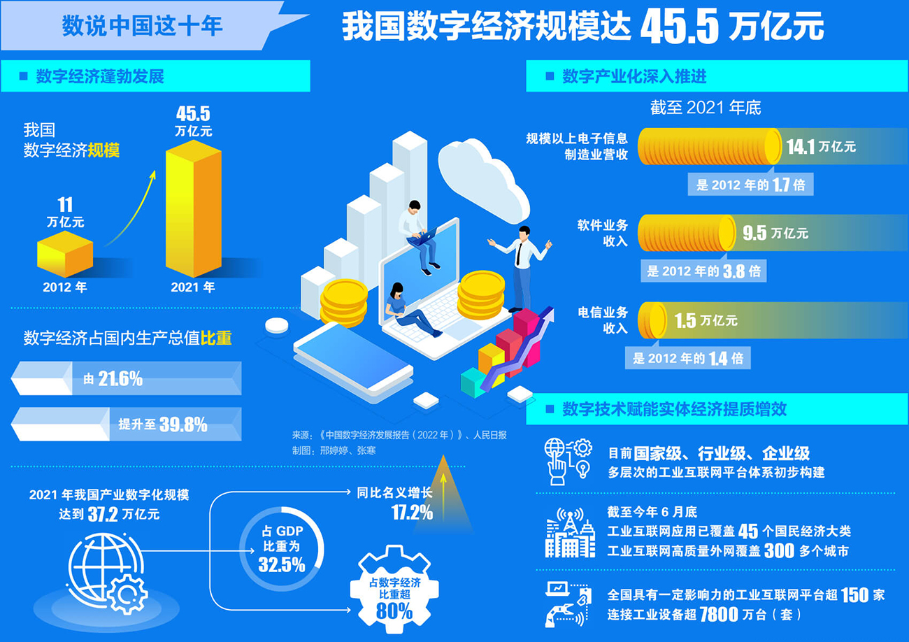 數(shù)說中國這十年丨我國數(shù)字經(jīng)濟規(guī)模達(dá)45.5萬億元