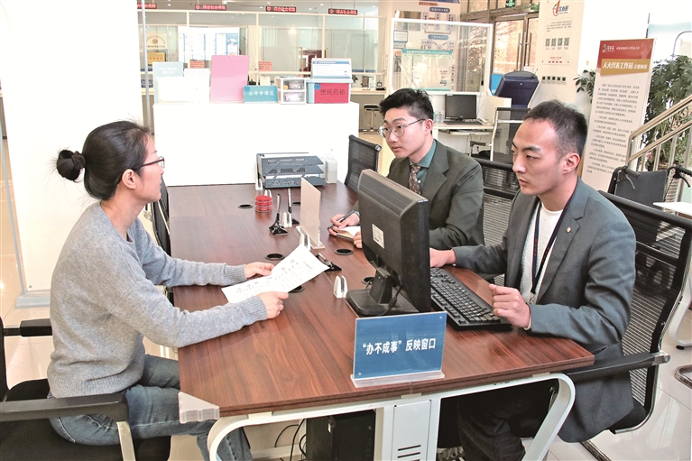 山東省青島市黃島區(qū)紀委監(jiān)委聚焦漠視群眾合理訴求、推諉扯皮“打太極”、不擔當不作為等不正之風,“懲治防”一體發(fā)力,堅決糾治不擔當不作為問題。圖為該區(qū)紀檢監(jiān)察干部在“辦不成事”反映窗口向群眾了解有關(guān)情況。杜翔宇 攝