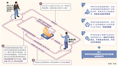 楊一龍:根據(jù)刑法第一百八十六條規(guī)定,違法發(fā)放貸款罪是指銀行或者其他金融機構(gòu)的工作人員違反國家規(guī)定發(fā)放貸款,數(shù)額巨大或者造成重大損失的行為。本案中,對于甲接受有關(guān)公司和個人請托,在明知其借款用途不真實、貸款資料虛假或冒名貸款等情況下仍審核通過貸款,明顯違反國家法律法規(guī)不存在爭議。但有觀點認(rèn)為,甲審核通過貸款僅為發(fā)放貸款環(huán)節(jié)中的一個非決定性環(huán)節(jié),不應(yīng)讓甲承擔(dān)違法發(fā)放貸款的刑事責(zé)任,如果認(rèn)定其構(gòu)成違法發(fā)放貸款罪,那么就應(yīng)追究貸款環(huán)節(jié)所有人的罪責(zé)。
