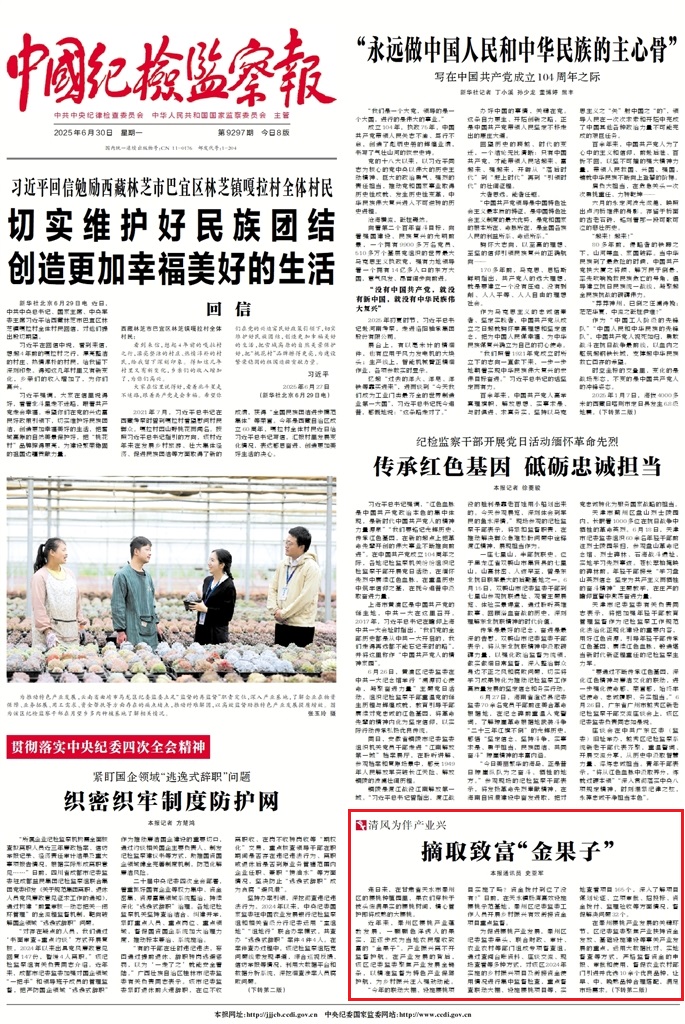 《中國紀檢監(jiān)察報》2025年6月30日 第1版