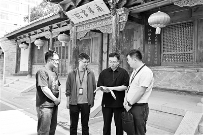 甘肅省張掖市紀委監(jiān)委聚焦文物文化遺址保護、規(guī)劃審批、資金撥付使用等關鍵環(huán)節(jié),強化日常監(jiān)督。圖為該市紀檢監(jiān)察干部在甘州區(qū)西來寺巷歷史文化街區(qū)了解有關情況。王夢婷 攝