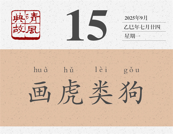 龍伯高、杜季良為當時名士,伯高老實敦厚,馬援喻之以鵠;季良豪爽仗義,馬援喻之以虎。“刻鵠不成尚類鶩”的意思是,畫天鵝不成但還有些像鴨子,雖不逼真,但還相似;“畫虎不成反類狗”的意思是,畫老虎不成卻畫成了一只狗,其形其神,差之遠矣。人們即以“畫虎類狗”為典,比喻刻意模仿,弄巧成拙。皮日休詩《宏詞下第感恩獻兵部侍郎》:“畫虎已成翻類狗,登龍才變即為魚。”