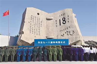 9月18日,沈陽(yáng)“九•一八”歷史博物館殘歷碑前,警世鐘聲再次回蕩。