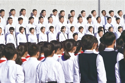 “白山黑水齊出動(dòng),復(fù)興我中華……”殘歷碑廣場(chǎng)上,80名青年學(xué)生鏗鏘有力的朗誦聲,讓《送戰(zhàn)友編歌壯行保國(guó)家》《黑水白山•調(diào)寄滿江紅》《濱江抒懷》三首分別由東北抗聯(lián)英雄楊靖宇、趙尚志、趙一曼當(dāng)年寫(xiě)下的詩(shī)詞響徹在沈陽(yáng)“九•一八”歷史博物館上空。