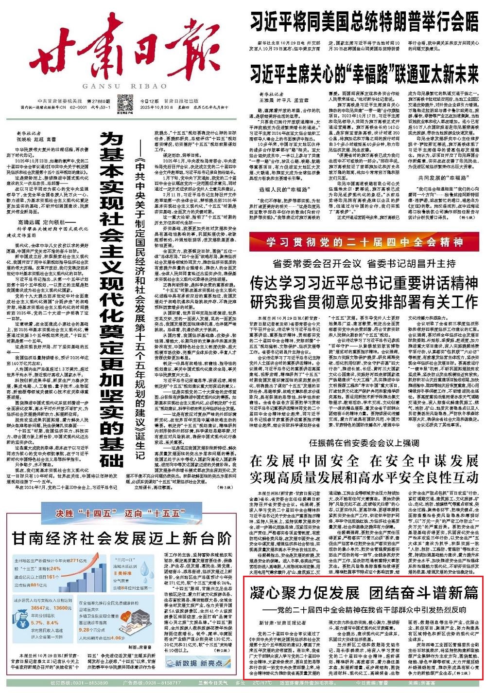 《甘肅日報》2025年10月30日 第1版