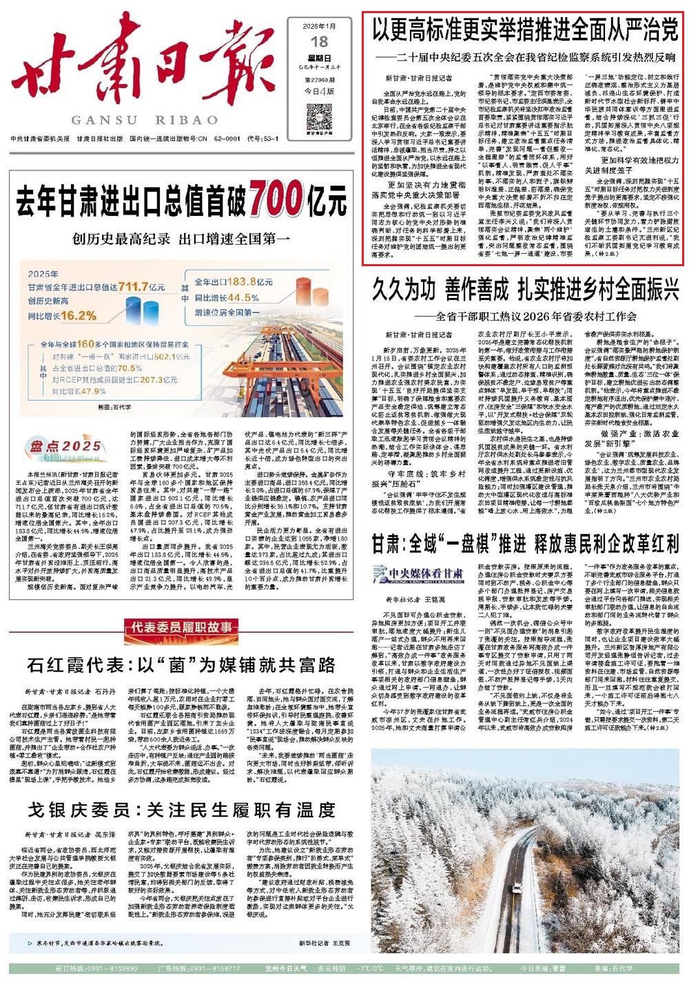2026-01-21 10:41 來源:甘肅日?qǐng)?bào)