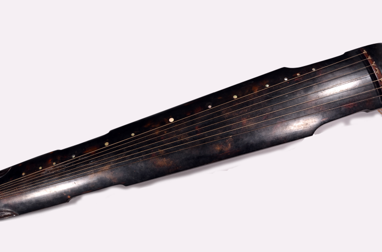 明代,通長(zhǎng)124.5厘米,琴額寬17.3厘米,琴肩寬21厘米,琴尾寬13厘米,形制為仲尼式,琴面為梧桐木,通體呈深栗色。護(hù)軫為卷角飾,弦軫為紅木制成。琴腹龍池上方鐫刻篆書詩(shī)一首“空山無人,鳴泉幽咽,歸從舒音,淖猨司鈴”,共16字,落款為“鄭世子”。池下沼上鐫刻方形篆書印章一方,為“鄭學(xué)圖書”。刻腹款“大明萬歷十年歲次壬午二月吉旦,鄭世子載堉按太簇尺造”。朱載堉是明代杰出律學(xué)家、歷算家,首創(chuàng) “十二平均律”,在音樂、數(shù)學(xué)、天文等領(lǐng)域均有重大建樹。