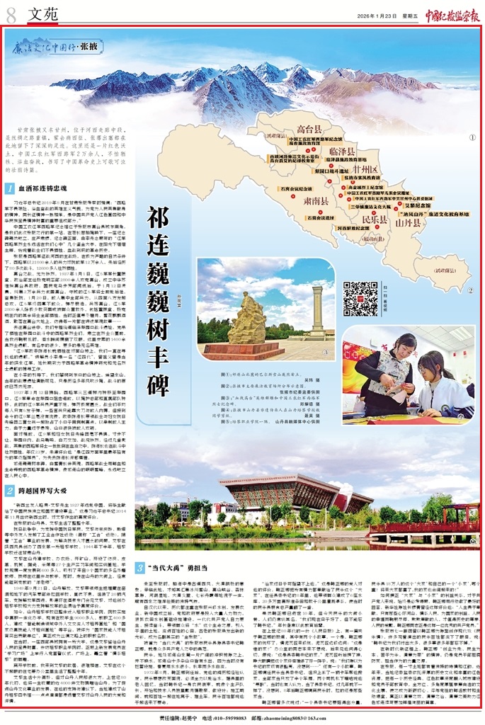 在張掖,每一寸土地都有著獨(dú)特的詩(shī)情和紅韻。近年來(lái),當(dāng)?shù)丶o(jì)委監(jiān)委依托深厚的歷史文化和豐富的紅色資源,把每一個(gè)歷史經(jīng)典、紅色故事深度融入城市建設(shè)和黨員干部教育中,全方位、多角度厚植崇廉尚潔的文化土壤,使之成為砥礪初心、淬煉黨性的鮮活教材和生動(dòng)課堂,真正以清廉之效、清廉之治、清廉之美助力紅色祁連續(xù)寫(xiě)更加輝煌絢麗的篇章。(孫現(xiàn)富)
