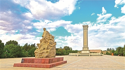 “血戰(zhàn)高臺(tái)”英雄群雕和中國(guó)工農(nóng)紅軍西路軍烈士紀(jì)念碑。鄭耀德 攝