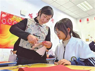 張掖市山丹縣非遺傳承人在山丹培黎學(xué)校教同學(xué)剪紙。聶英 攝
