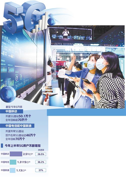 從三大電信運(yùn)營商公布的數(shù)據(jù)看,今年上半年,中國移動的5G套餐用戶數(shù)為2.51億戶,滲透率達(dá)26.5%;中國電信的5G套餐用戶數(shù)為1.3115億戶,滲透率達(dá)36.2%;中國聯(lián)通的5G套餐用戶數(shù)為1.13億戶,滲透率達(dá)37%。
