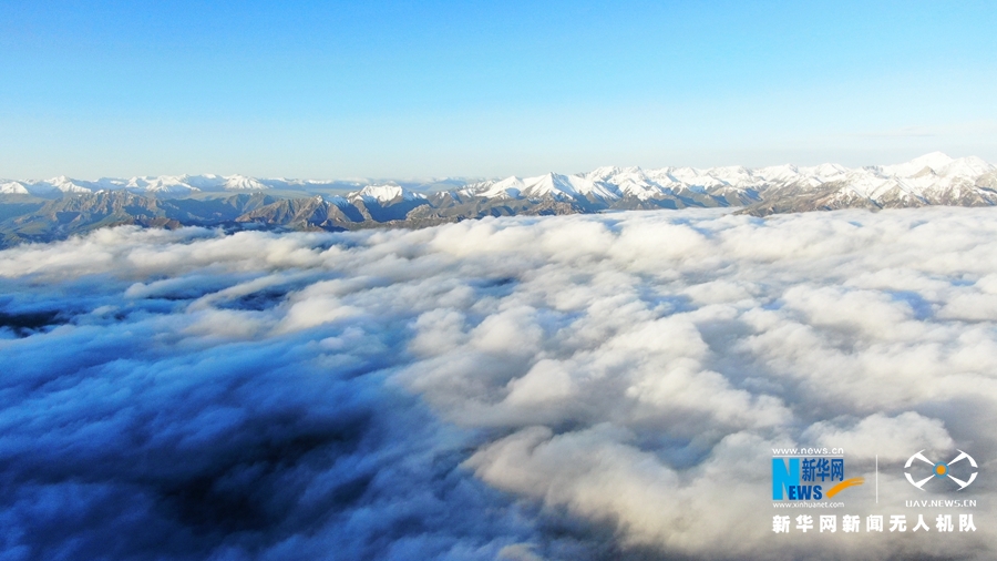 這是8月18日在甘肅省肅南裕固族自治縣境內(nèi)拍攝的祁連山云霧景觀。當(dāng)日,祁連山區(qū)云霧繚繞,從高空俯瞰,如波濤洶涌起伏,與雪山、藍(lán)天相互輝映,美不勝收。(飛手:武雪峰 攝影:安維斌)