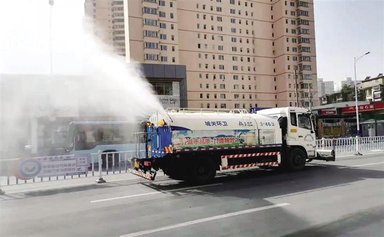原標(biāo)題:加派作業(yè)車輛 增加保潔頻次 保持路面濕潤(rùn)