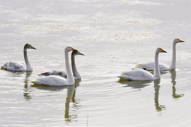 中國甘肅網(wǎng)1月7日訊 據(jù)蘭州日報報道(記者 董永前 攝)最近幾天,西固區(qū)達(dá)川鎮(zhèn)三江口水域,成群天鵝在這里“落戶安家”,成為當(dāng)?shù)匾患恍〉男侣?,吸引不少市民和游客前來觀賞。