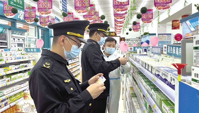 執(zhí)法人員督促藥店落實疫情防控措施 鄭麗君 攝