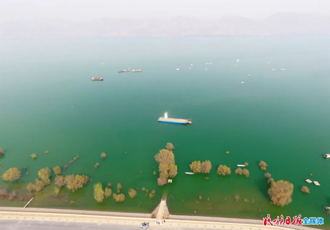 3月23日,記者來到庫區(qū)岸邊,遠(yuǎn)看,湖水湛藍(lán),輕舟游弋,水鳥嬉戲;近看,碧波蕩漾,水清見石,魚翔淺底。在人們的贊嘆聲中,湖面上劃過一艘小船,那是打撈清理黃河垃圾的清潔船。這艘船從早到晚,來回游動,及時(shí)清理著河面的垃圾。