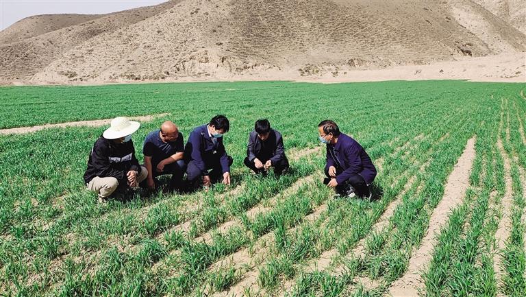 中國(guó)甘肅網(wǎng)5月11日訊 據(jù)蘭州日?qǐng)?bào)報(bào)道(記者 程珊珊 文/圖)走進(jìn)皋蘭縣石洞鎮(zhèn)鎮(zhèn)東灣村的田間地頭,只見(jiàn)綠油油的麥田分布在村道兩旁,蘊(yùn)含綠色的期盼。皋蘭縣農(nóng)技中心主任王朝軍又下地了,帶著小鏟子、鋼卷尺等幾件從不離身的家伙。走進(jìn)麥田觀察根系、測(cè)量株高,細(xì)心查看苗情、墑情、肥情以及病蟲(chóng)害情,而他的身邊還圍著不少村里的種糧大戶。