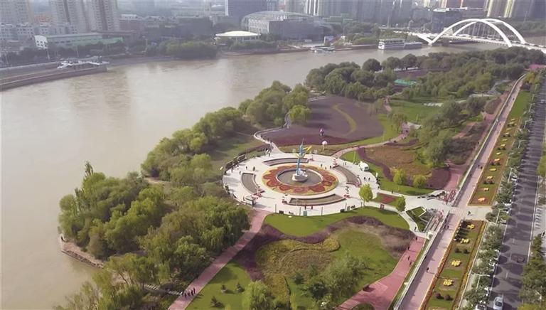 盛夏時節(jié),晴空萬里,漫步在黃河之濱,遠(yuǎn)處白塔巍巍、水車悠悠,鐵橋橫臥,游船穿行;眼前的黃河時而湍急、翻滾,浩浩蕩蕩奔流向前;時而寧靜、蜿蜒,如母親溫柔的懷抱,包容著城市的喧囂。景隨步移,公園、廣場、小游園、雕塑景觀等星羅棋布,形成了水天一色、詩情畫意的濱水空間。