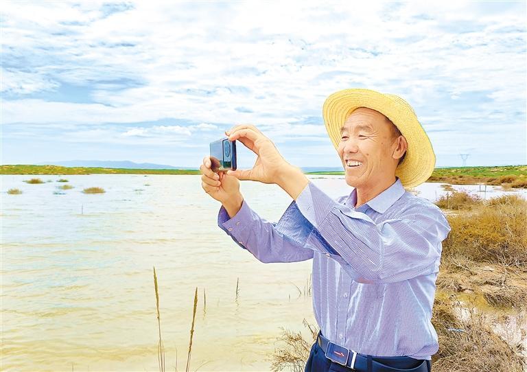 郭萬剛格外珍惜這一灘湖水,他沿著水岸走了很久,還不時(shí)地用手機(jī)拍照,他認(rèn)為這是大自然對(duì)古浪持續(xù)開展生態(tài)建設(shè)的回報(bào)。“我今年70歲了,這是我第一次在這片沙漠里見到湖泊,給它取名‘紅沙湖’,希望它像沙漠里的紅柳一樣永遠(yuǎn)充滿生機(jī),不要干涸。”郭萬剛說。