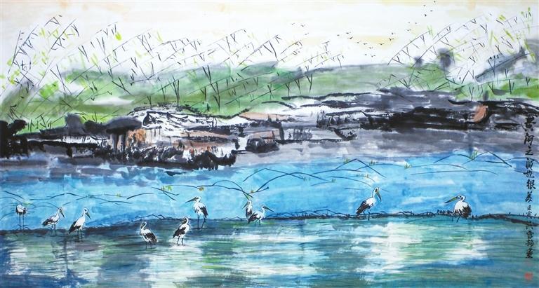 美麗的黃河之濱 (中國(guó)畫) 吳雪梅