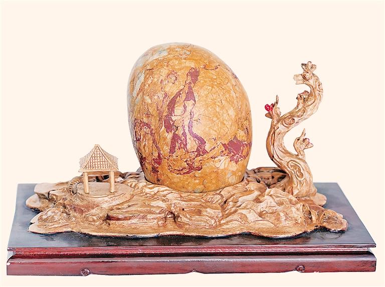河州人愛石,歷史源遠流長?!独m(xù)修導河縣志》中記載:“枹罕石產縣南十里牛脊河灘,石質細膩,分五色,中間有天然生成山水、花卉諸圖形,惟妙惟肖。制為玩品,頗有價值。光緒初年,北塬地陷,古墓開,內多車衢珠,大小不一,潔白光潤,不同尋常。”志中所記枹罕石即為河州石。有奇石,有歷史,使得河州人賞石、藏石就有了很大的廣泛性和群眾性,隨處可見主人精心挑選的各種石頭,而其中的奇石珍品,不由得令人端視良久,拍案叫絕。