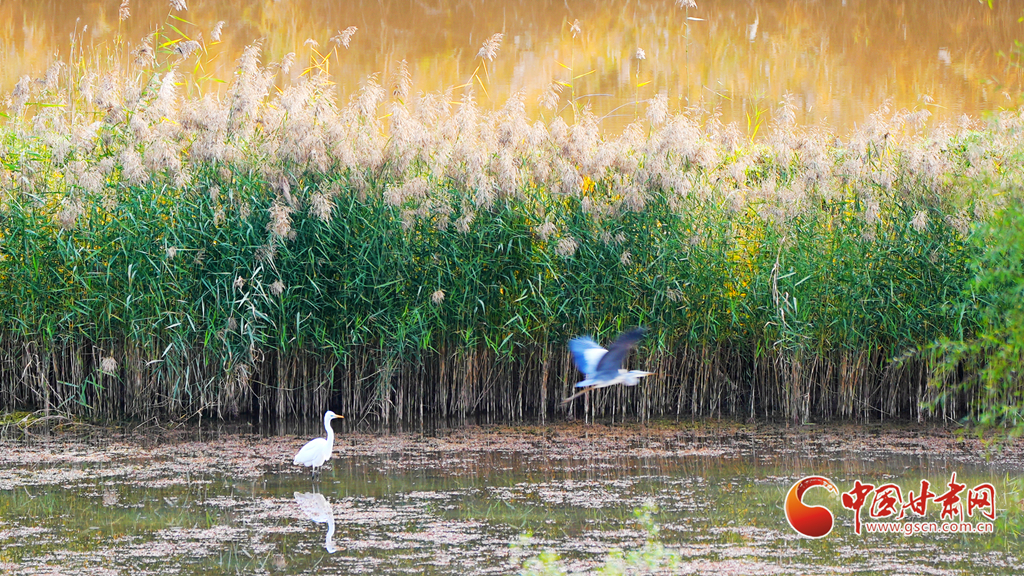 深秋時(shí)節(jié),永靖縣太極湖濕地蘆葦搖曳,野鴨戲水,白鷺蹁躚,宛如一幅美妙的秋日畫(huà)卷。