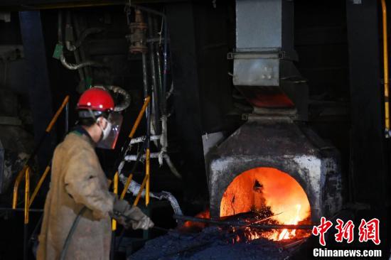 金川集團鎳冶煉廠閃速爐車間內(nèi),工作人員穿戴專業(yè)防護裝備觀察轉(zhuǎn)爐天然氣烤爐。
