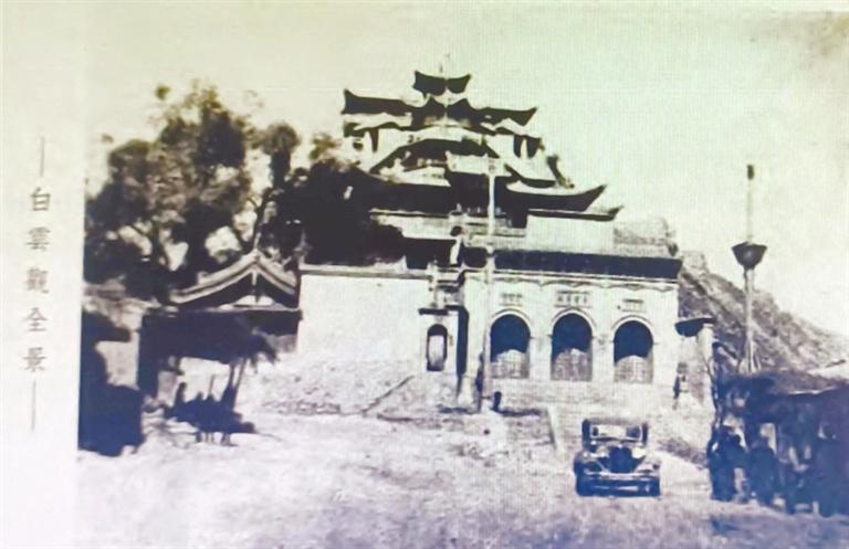 1935年5月,邵元沖考察西北途經(jīng)蘭州,專程赴崔家崖白云觀參訪。《西北隨軺記》載:“依極壽山麓,建白云觀,高三百余級,黃流襟帶,榆柳成蔭,書長無事,凝坐其間,聆水聲潺湲,聽鳥語啾啁,亦足滌塵煩,消炎夏。”邵元沖為此特作《題崔家崖白云觀》詩曰:“玄都峙重崖,清磬林間響。俯瞰大河橫,寒流走混□。柳晚翠煙浮,閑云獨來往。”《西北攬勝》一書中,專門刊載兩幅崔家崖白云觀照片,照片說明曰:“北臨黃河,南接蘭山,形勢雄壯,殿宇倚坡上筑,宏麗精巧,且曲徑回廊,引人入勝,亦蘭垣名勝之一也。” 從老照片中可見,崔家崖白云觀依山而建,頗具氣勢,而且交通便利,邵元沖一行乘坐的小汽車可以直達觀前。