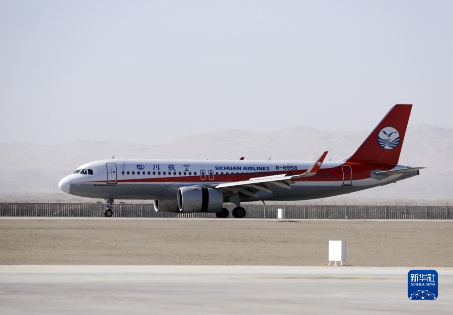 3月26日,由四川航空公司執(zhí)飛的成都至敦煌往返直達航線正式通航。這是首航航班降落在甘肅敦煌莫高國際機場。新華社發(fā)(張曉亮攝)