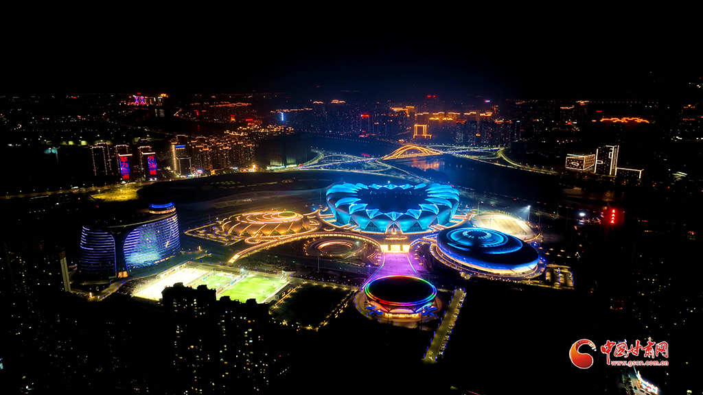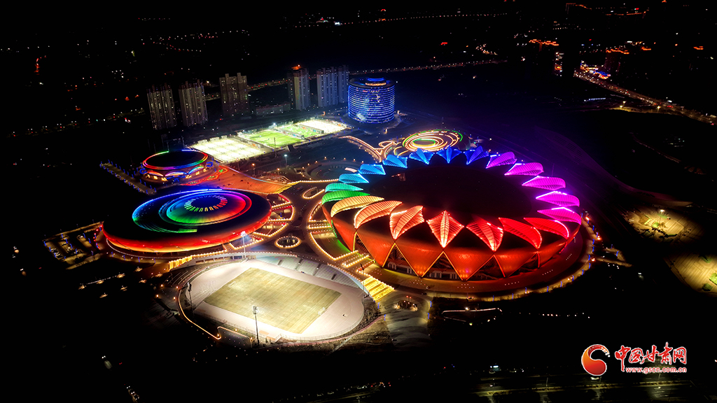 奧體中心的夜景美輪美奐,室外運(yùn)動(dòng)場(chǎng)上健身的人絡(luò)繹不絕。玫瑰體育館內(nèi)兩側(cè)座椅整齊排放,場(chǎng)館中間的綠色地毯引人注目;郁金香綜合館除了能夠感受籃球的激情,還能體驗(yàn)冰雪運(yùn)動(dòng)的魅力;百合游泳館內(nèi)的跳臺(tái)和泳池靜靜地等待著游泳健將的光臨。奧體中心多維度展示以‘舞動(dòng)于絲綢之路上的花朵’為設(shè)計(jì)理念,‘五朵金花’的設(shè)計(jì)不僅象征‘奧運(yùn)之花’競(jìng)技開放,也體現(xiàn)了奧運(yùn)五環(huán)環(huán)環(huán)相扣的理念。