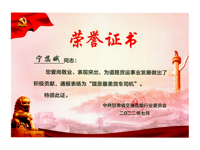 誠實守信奔跑在幸福路上的寧蕊娥也成為甘肅交通運輸系統(tǒng)2023年獲得全國五一勞動獎?wù)碌膭趧诱摺?/p>