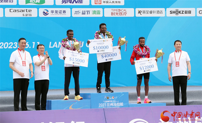 經(jīng)過(guò)兩個(gè)多小時(shí)的激烈角逐,全程馬拉松男子和女子組名次相應(yīng)產(chǎn)生。其中,男子馬拉松第一名打破了蘭馬賽會(huì)紀(jì)錄,女子馬拉松第一、二、三名均打破了蘭馬賽會(huì)記錄。