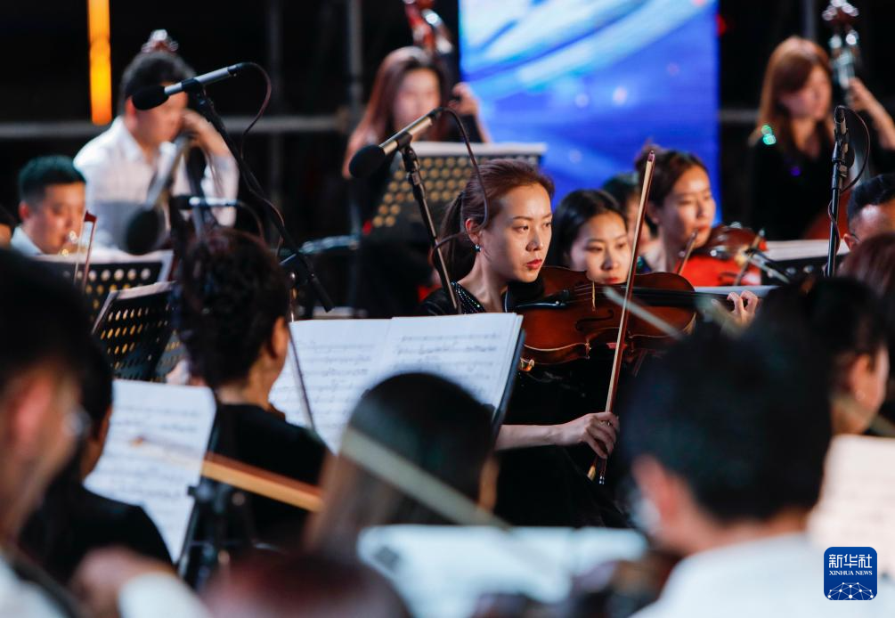 7月31日,來(lái)自甘肅省歌劇院、甘肅交響樂(lè)團(tuán)的演奏者們?cè)诒硌莨?jié)目。新華社記者 方欣 攝