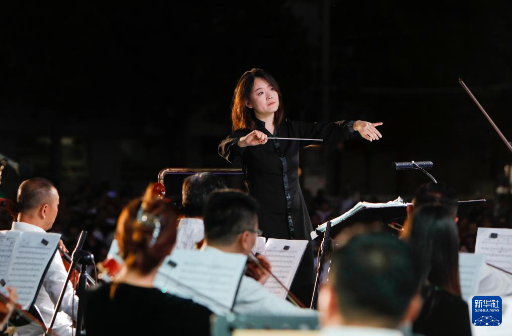 7月31日,甘肅交響樂(lè)團(tuán)首席指揮王璐在指揮演奏。新華社記者 方欣 攝