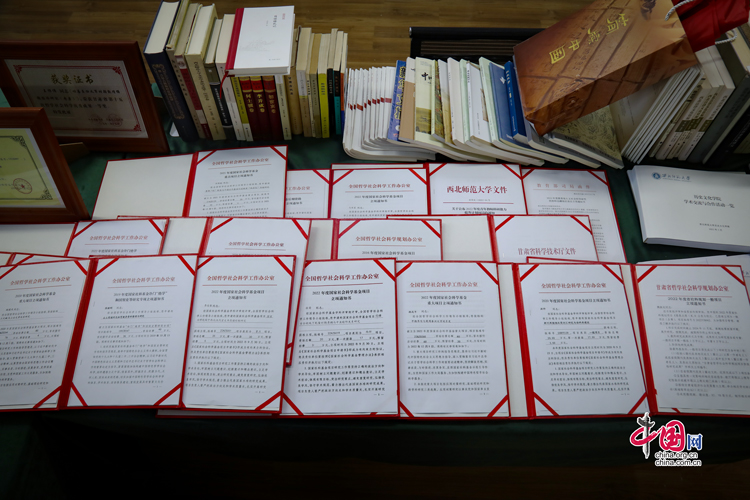 西北師范大學(xué)簡牘學(xué)學(xué)科建設(shè)部分資料(拍攝于7月31日)。中國網(wǎng)記者 鄭偉 攝