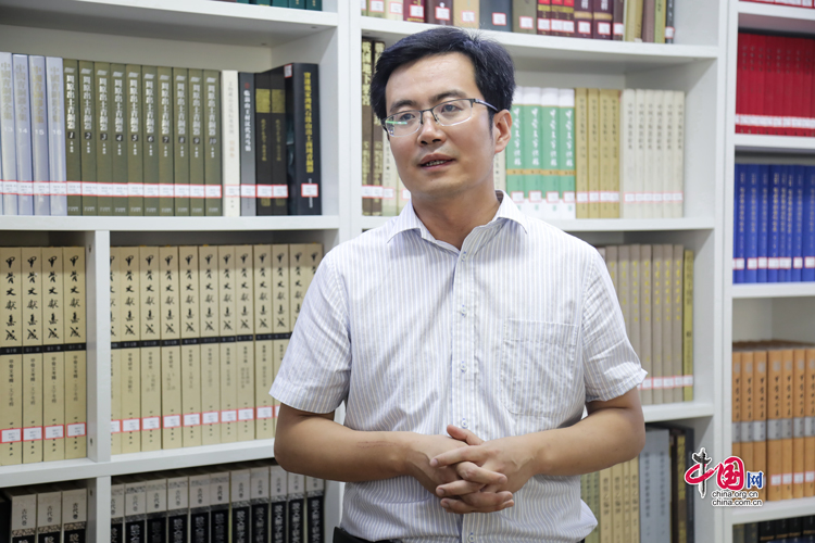 7月31日,西北師范大學(xué)歷史文化學(xué)院教授李迎春接受“簡牘中國”媒體團(tuán)的采訪。中國網(wǎng)記者 鄭偉 攝
