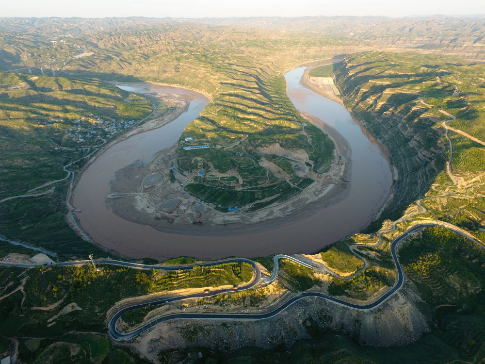 從黃河伏寺灣前穿過的陜西沿黃公路延安段(2017年8月9日攝)。新華社記者 邵瑞 攝