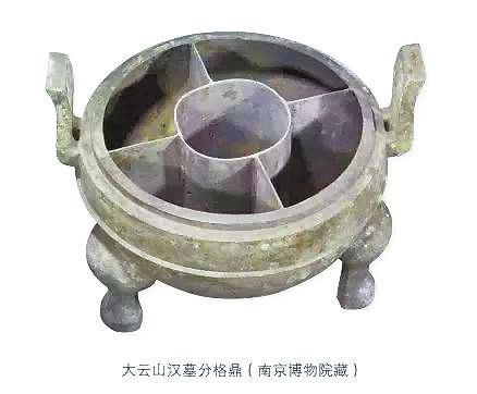 這里說(shuō)的“五熟釜”,內(nèi)分?jǐn)?shù)格,開(kāi)煮時(shí),中間爐火熾烈,四周湯羹沸騰,可以同時(shí)煮熟多種食物。很像北京涮羊肉鍋和重慶九宮格的初級(jí)合體。