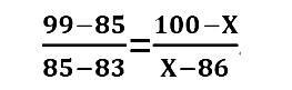 舉例說明:假如小王的地理科目原始成績?yōu)?5分,在當(dāng)年全省參加該科目考試的考生中位于前2.5%,根據(jù)上表,該成績位列A等級,該等級的賦分區(qū)間為100-86分。根據(jù)考生原始成績的分布,可知A等級的原始分數(shù)區(qū)間(假設(shè)為99-83分),那么小王地理科目的賦分成績(X)可通過如下公式計算: