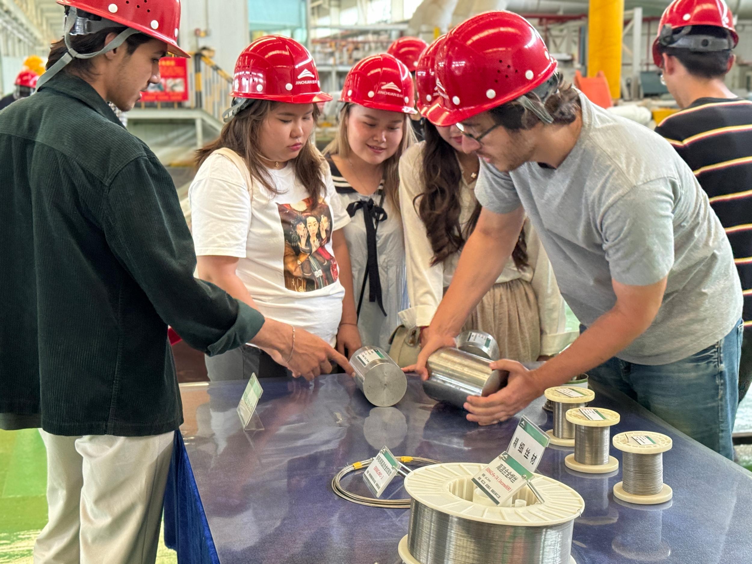 “國際體驗(yàn)官”們在鎳合金產(chǎn)品展示區(qū)交流互動(dòng)