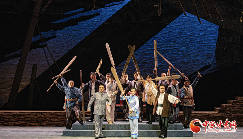 甘肅省隴劇院歷經(jīng)三年精心打造的隴劇《大河?xùn)|流》是國家藝術(shù)基金2024年度大型舞臺劇和作品創(chuàng)作資助項目。該劇以20世紀30年代末抗戰(zhàn)為背景,運用具有地方特色的隴劇形式,生動地描繪了大西北黃河邊的一群筏客子在國家危難之際,如何摒棄個人恩怨,團結(jié)一致支援抗戰(zhàn),組成水上大型運輸隊,將大量物資安全送達抗戰(zhàn)前線的英勇壯舉。