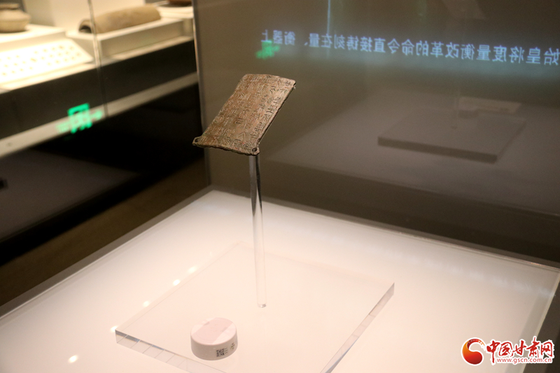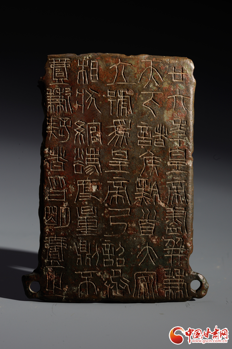 中國甘肅網(wǎng)9月14日訊(西北角·中國甘肅網(wǎng)記者 孫珩力)秦詔版,是指刻有秦始皇或秦二世統(tǒng)一度量衡詔書的銅版,有的鑲在鐵權、銅權上;有的四角有孔,用以釘在木頭的量器上。目前我國出土的刻有秦始皇詔文的遺物有銅橢量、銅錢等,不僅數(shù)量多而且分布也廣,而像這樣把詔文刻在銅版上的詔版形式在全國極為罕見,鎮(zhèn)原縣博物館收藏的就是其中之一,可謂稀世珍品。