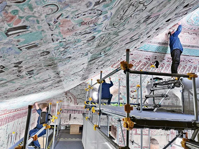 圖為2024年拍攝的莫高窟第55窟文物修復(fù)現(xiàn)場(chǎng)。來源:敦煌研究院供圖