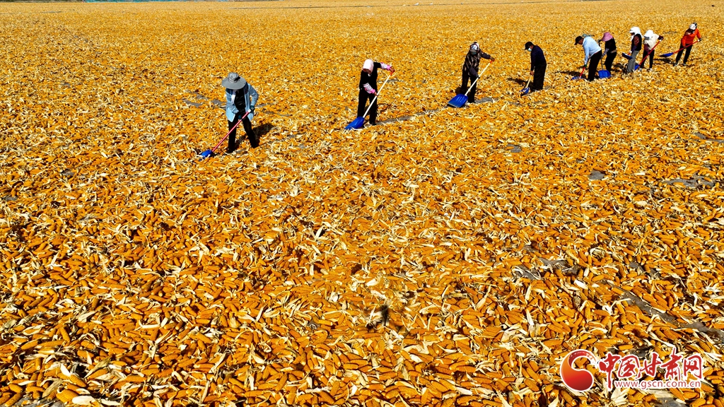 金秋時(shí)節(jié),張掖市種植的120.7萬(wàn)畝制種玉米喜獲豐收。9月17日,甘州區(qū)明永鎮(zhèn)夾河灘等多個(gè)玉米晾曬基地一片金黃,制種企業(yè)和農(nóng)戶緊抓晴好天氣,進(jìn)行晾曬和加工,晾曬場(chǎng)上呈現(xiàn)出“金色海洋”般豐收忙碌的喜人景象。