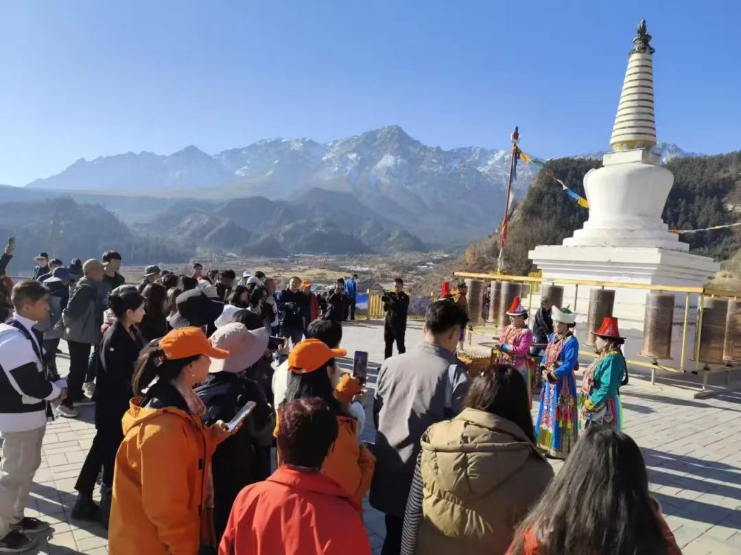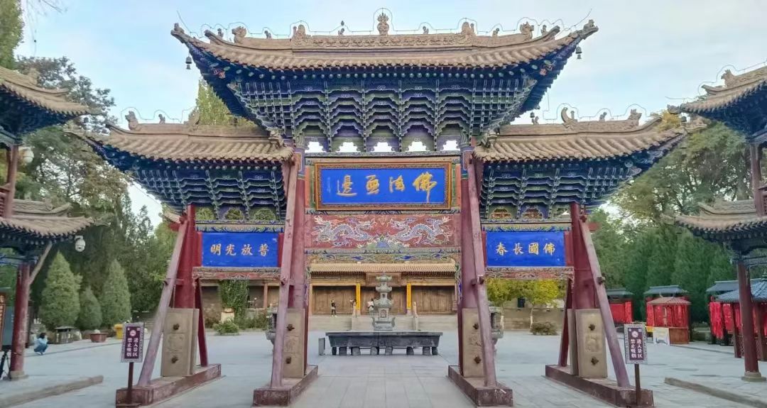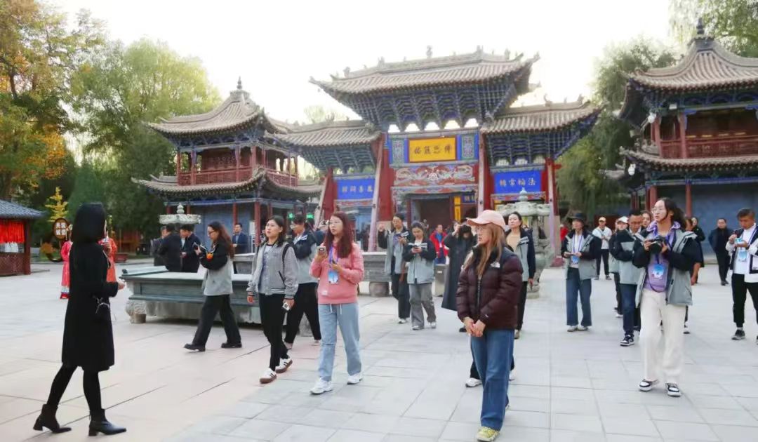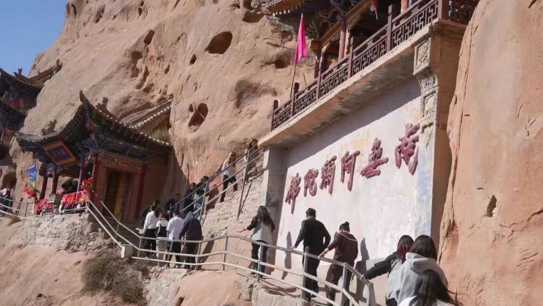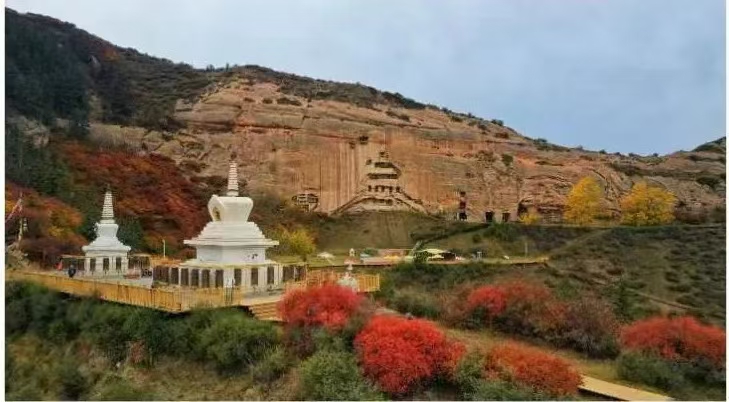 18日上午,迎著耀眼的晨光,采訪團(tuán)成員乘坐大巴車來到了集自然風(fēng)光、石窟藝術(shù)、民族風(fēng)情、宗教文化于一體的肅南馬蹄寺。馬蹄寺是河西走廊著名的佛教勝地,石窟群開鑿于十六國北涼時(shí)期,距今約1600年的歷史,是絲綢之路上至關(guān)重要的歷史文化瑰寶,也是我國早期石窟的杰出代表。秋日的馬蹄寺,秋高氣爽,景色宜人,遠(yuǎn)遠(yuǎn)看去,紅綠相間,層林盡染,大家行走在落葉飄零的山間小路上,對這座建在懸崖峭壁之上、將棧道鑲嵌在山體之內(nèi)的石窟充滿了好奇。