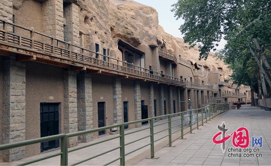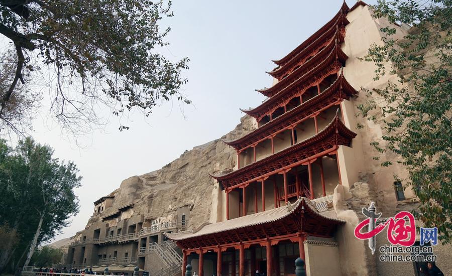 據(jù)敦煌研究院資料顯示,石窟以彩塑為主體,四壁及頂均彩繪壁畫,地面漫鋪花磚,窟外有窟檐(或殿堂)、棧道,窟窟相通相連,是以石窟建筑、彩塑和壁畫三者合一的佛教文化遺存。